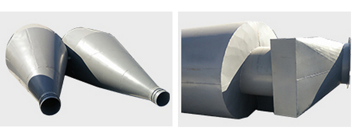 XZD/G旋風(fēng)除塵器采用錐形底板的蝸殼結(jié)構(gòu)并裝有螺旋形進(jìn)出口連接底板。