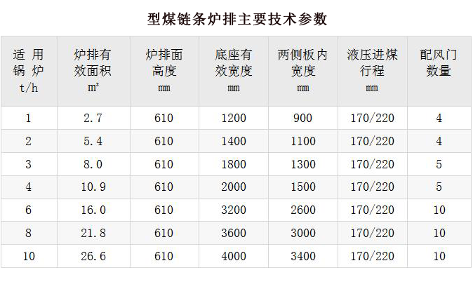 型煤鏈條爐排是我公司專為型煤鍋爐設(shè)計生產(chǎn)的機(jī)械化燃燒設(shè)備。一般可為蒸發(fā)量1~10t/h的型煤蒸汽或熱水鍋爐配套,也可用于各種加熱、烘干專用設(shè)備中。適宜燃燒以煙煤、褐煤和泥煤為主的方形蜂窩型煤。型煤鏈條爐排使用的煤質(zhì)應(yīng)符合下列要求: