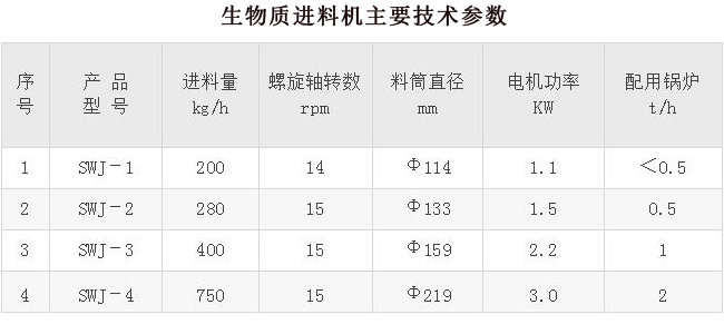 SWJ型系列生物質(zhì)進(jìn)料機(jī),是我公司專為生物質(zhì)鍋爐燃用秸桿顆粒等物料配套的理想進(jìn)料設(shè)備,可大幅減輕進(jìn)料勞動(dòng)強(qiáng)度,保護(hù)環(huán)境衛(wèi)生,保證安全生產(chǎn)。該機(jī)操作簡(jiǎn)便,每班僅需一人間斷地往料箱內(nèi)加滿生物質(zhì)顆粒和做一般性檢查巡視,就能使鍋爐進(jìn)料與爐膛燃燒正常進(jìn)行。該機(jī)適用于立式或臥式生物質(zhì)鍋爐2噸以下單臺(tái)鍋爐的進(jìn)料系統(tǒng)。